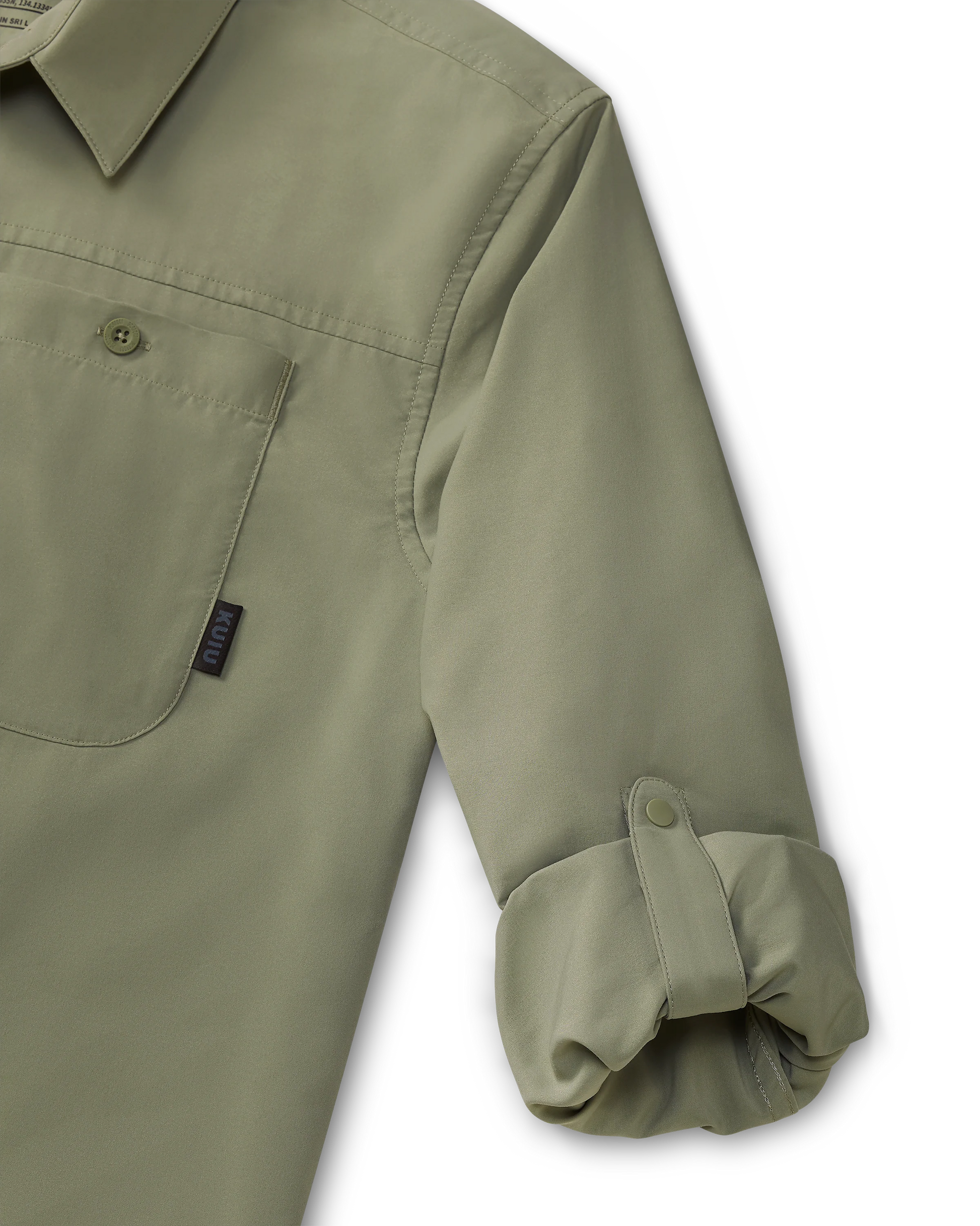 Built for your everyday excursions, this technical button-up shirt features rollable sleeves, button closure chest pockets, and a built-in micro-fiber lens cleaning patch. Combining an antimicrobial treatment with a nylon and polyester woven blend, you get unbeatable odor resistance and rapid moisture wicking performance wherever you go.