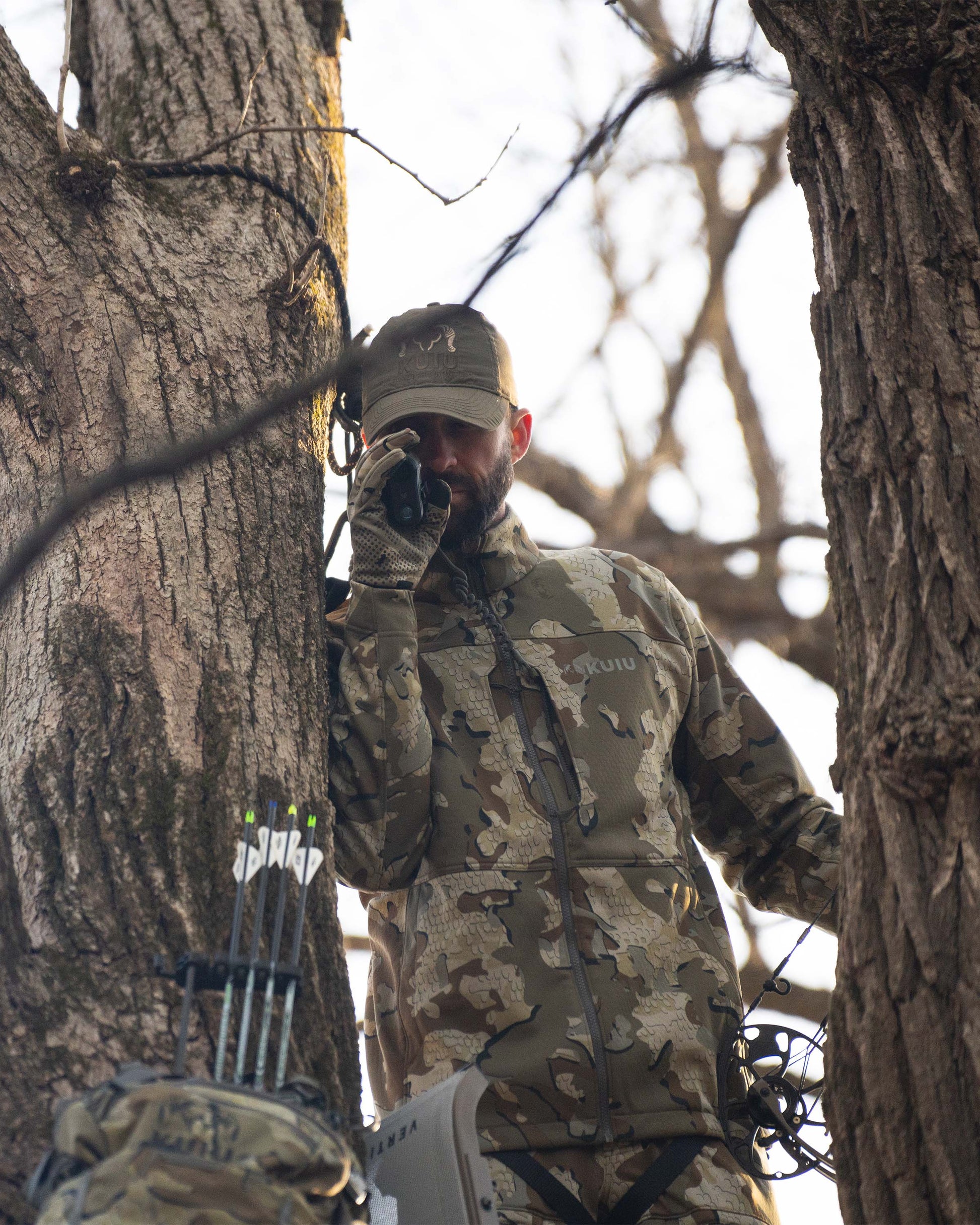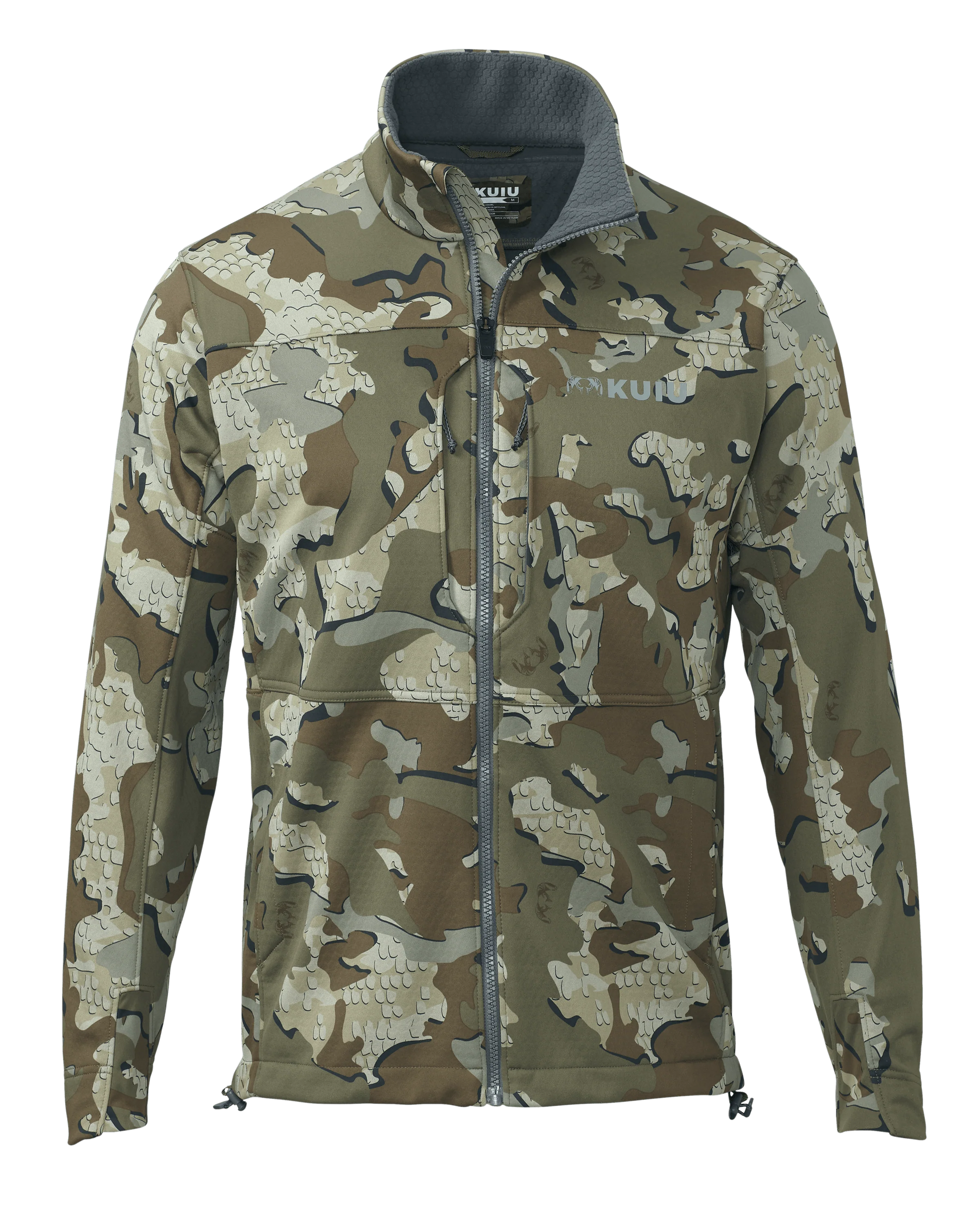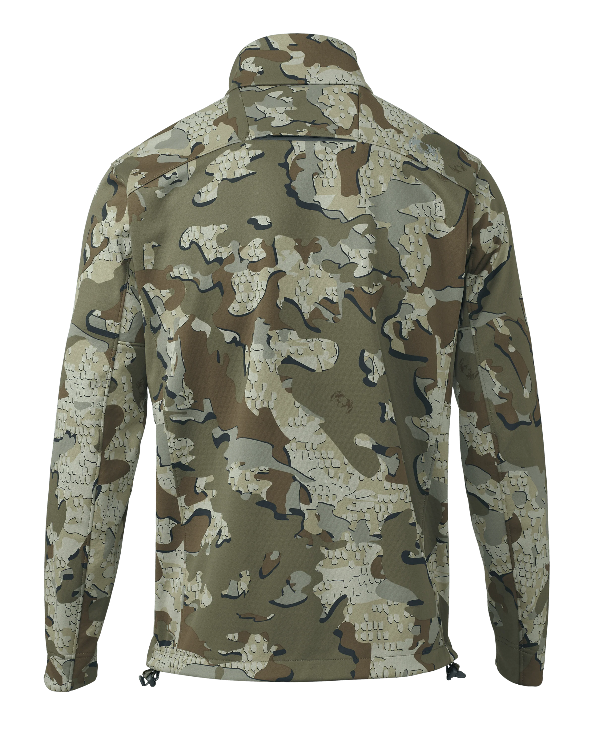 Purpose built for stand hunting in early- to mid-season conditions, this un-insulated softshell jacket is equipped with an ultra-quiet, low-sheen outer layer, with a bonded jacquard fleece interior for increased warmth while maintaining optimal breathability and temperature regulation. The jacquard fleece is not only lighter weight, but its negative space traps pockets of warm air for added comfort.