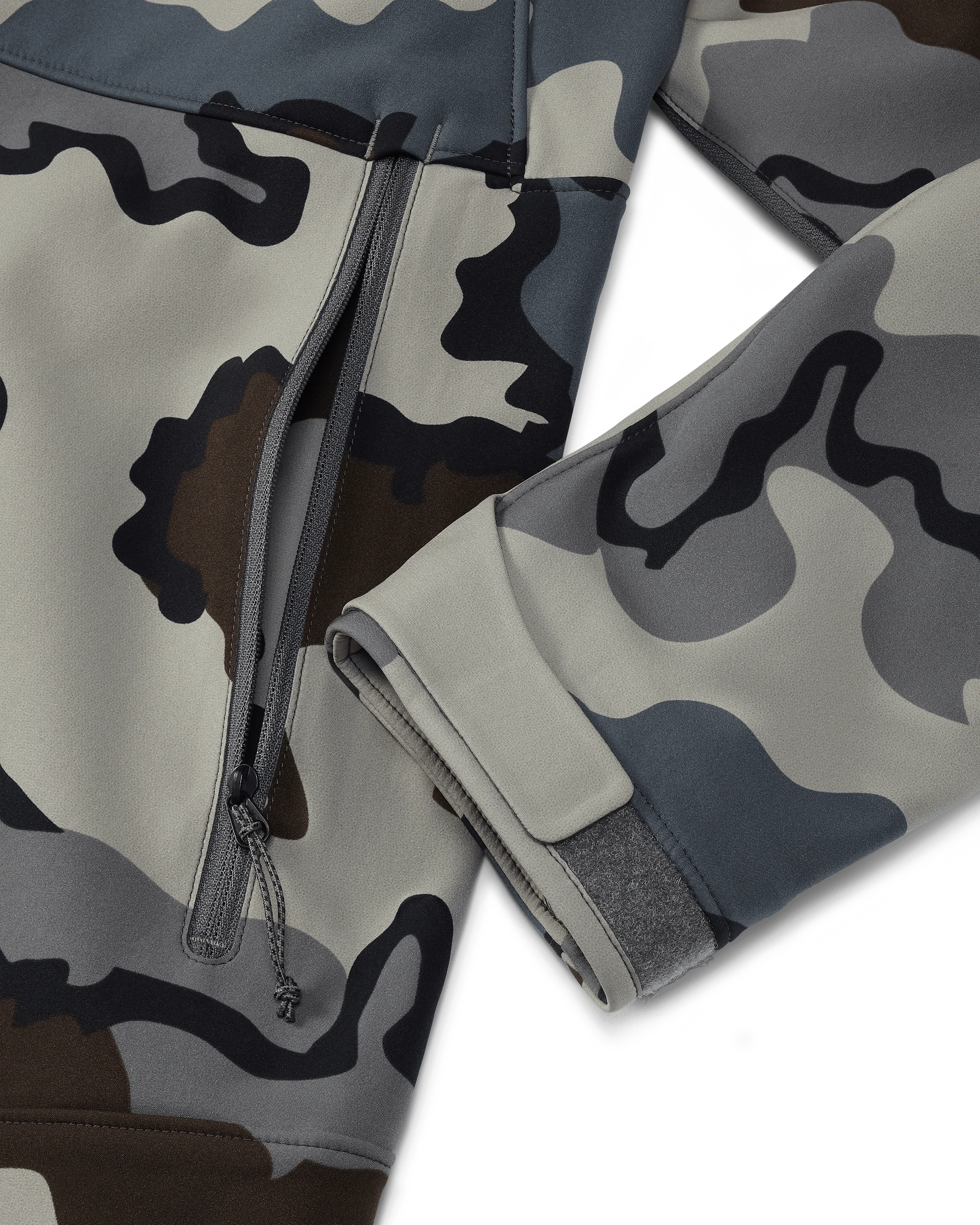 With the mountain hunter in mind, we optimized and fine-tuned every feature, including dual chest pockets with an added accessory lanyard connection point, zippered pit vents for thermoregulation, and a two-way adjustable storm hood that can be cinched back on either side and worn up while shooting. In addition, an adjustable hem cinch blocks out wind, and raised hand pockets stay accessible while wearing a pack.