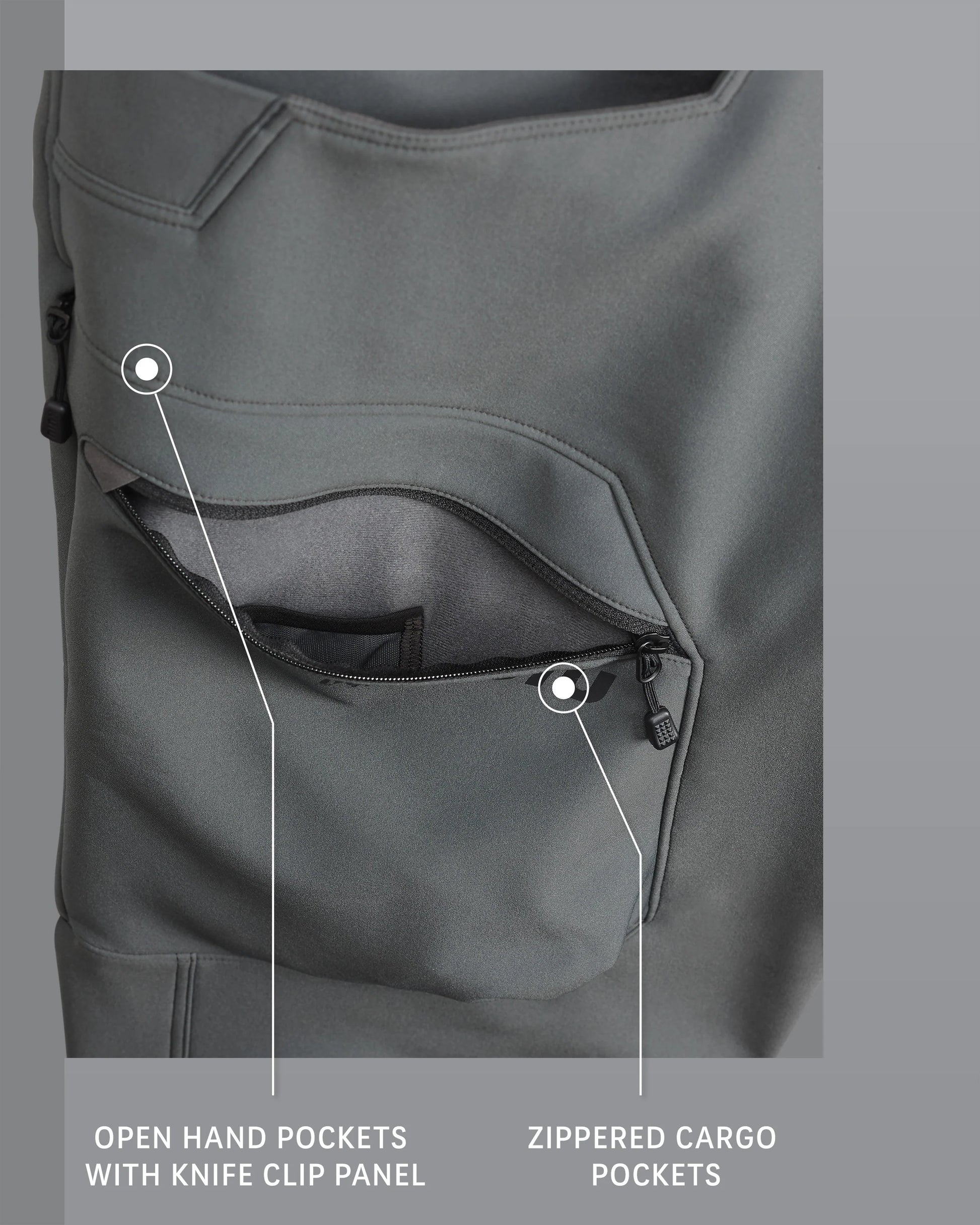 - Zippered cargo pockets