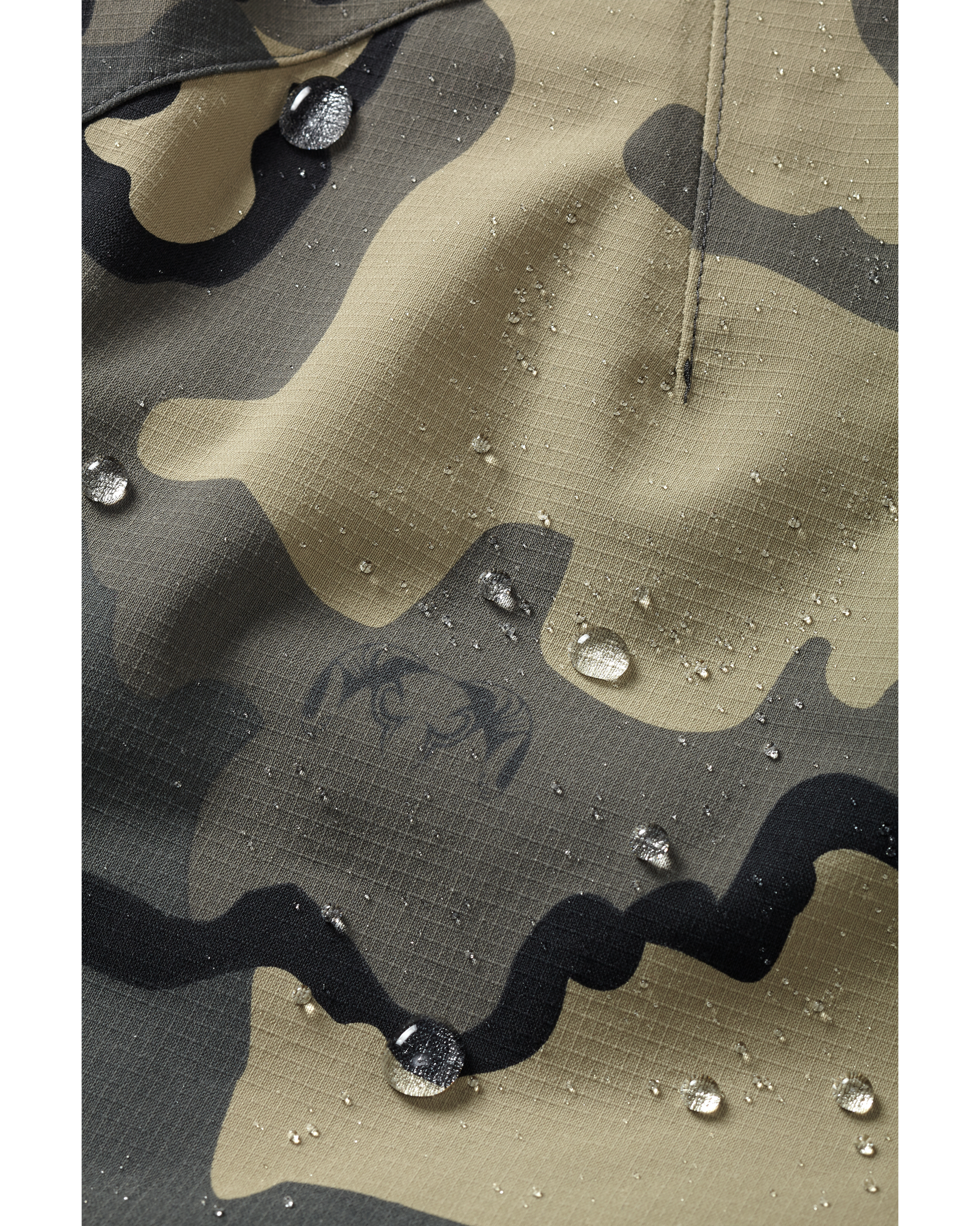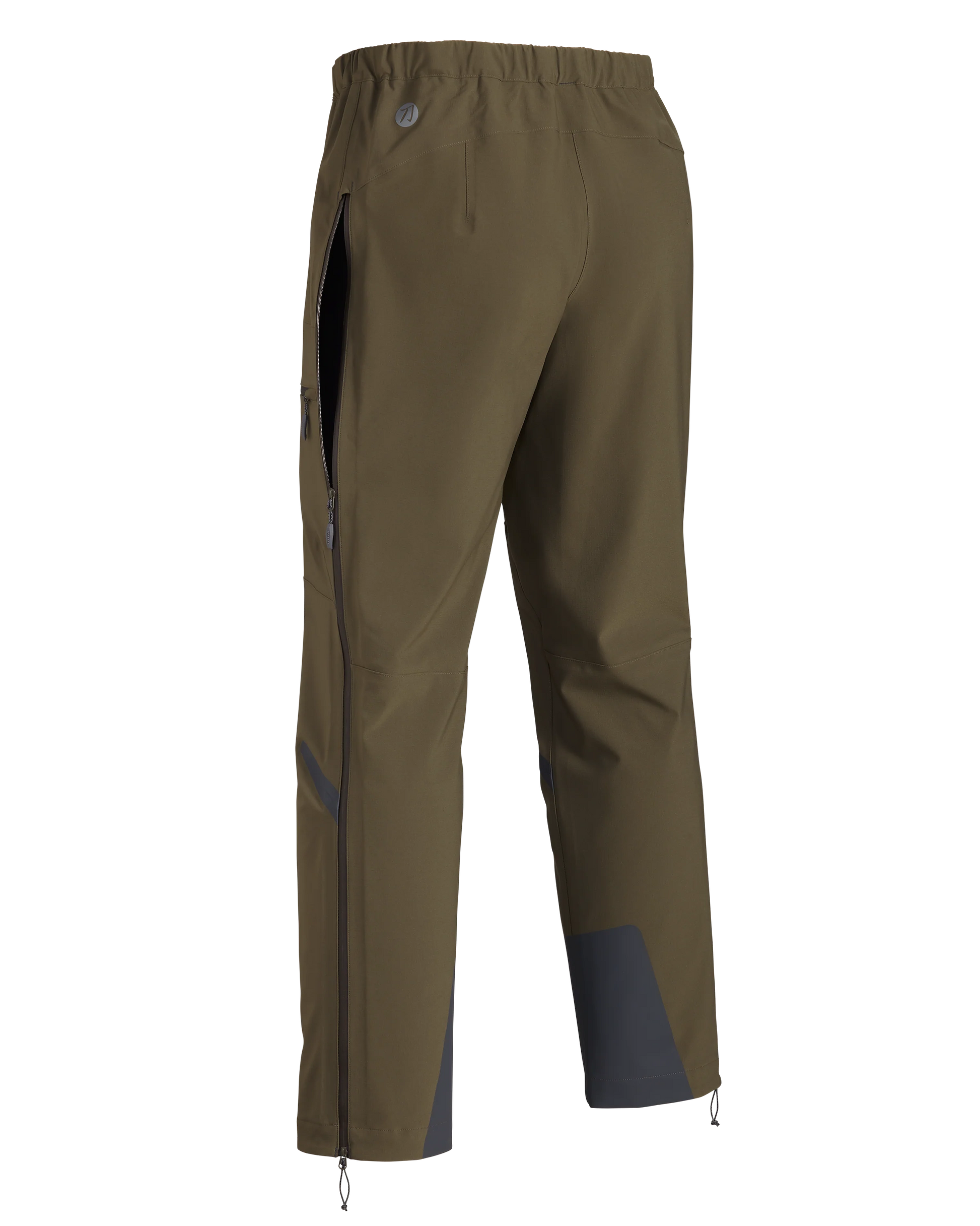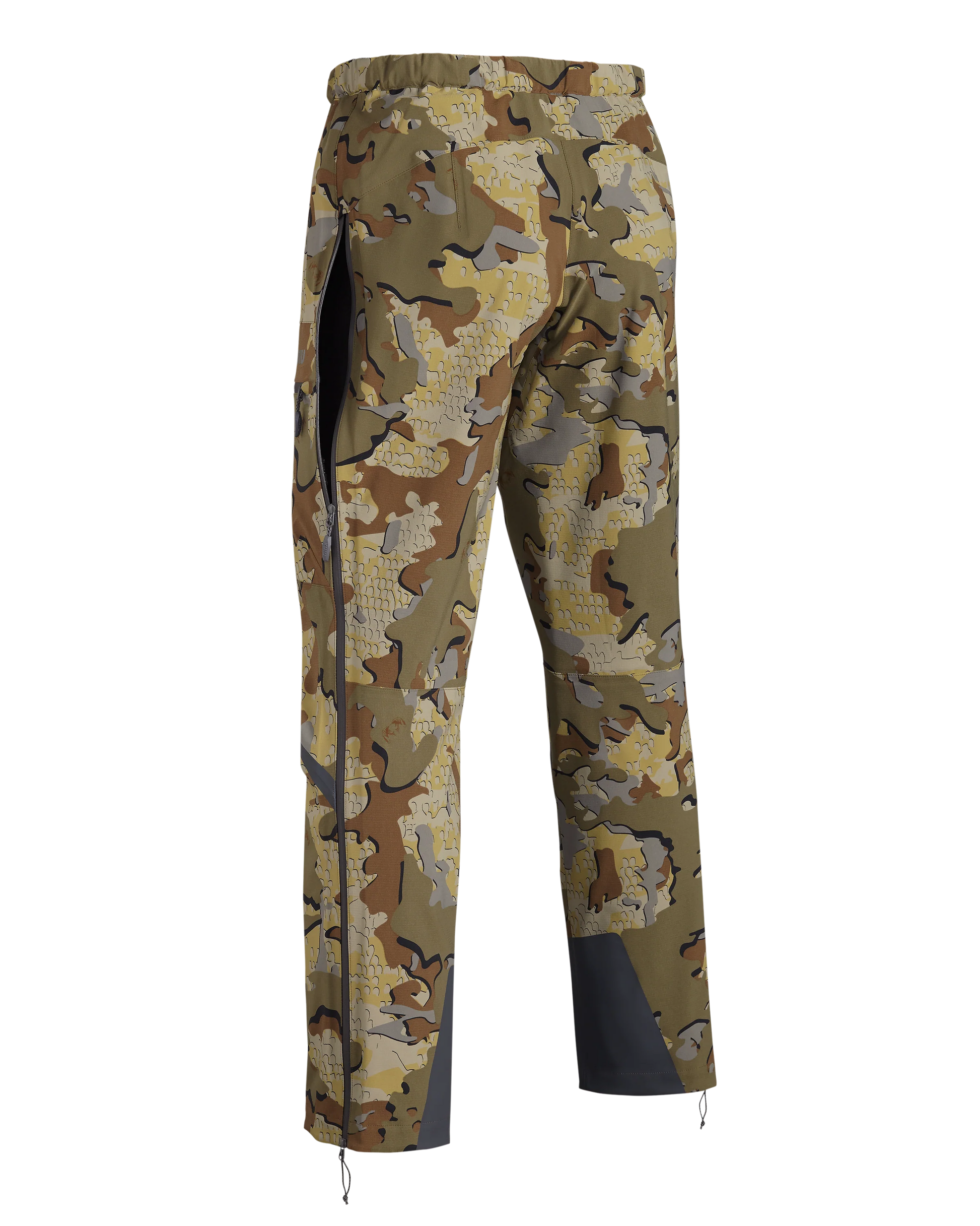 If you're preparing for a tough hunt that's wet and brush-choked, you need protection from a rain gear system that's durable, lightweight, and dries quickly. The Kutana Storm Shell Pant features an entirely new microporous hydrophobic membrane from Toray that breathes even when activity level is minimal, and absorbs very little water for incredibly fast dry times. The durable stretch nylon 6/6 face fabric offers great tear strength for its weight, and will stay dry longer due to a new, more durable K-DWR treatment. The new Torain 3-layer construction from Toray adds a revolutionary new seam tape that, along with the membrane, give enhanced hydrolysis resistance for significantly improved garment longevity. Designed with the features you need for all-day use, including cargo pockets, full-length leg zips, a built-in waist belt, and Bemis overlay film on the cuff for abrasion protection, the Kutana Storm Shell Pant furthers our never-ending goal of offering improved performance and durability at a lighter weight.