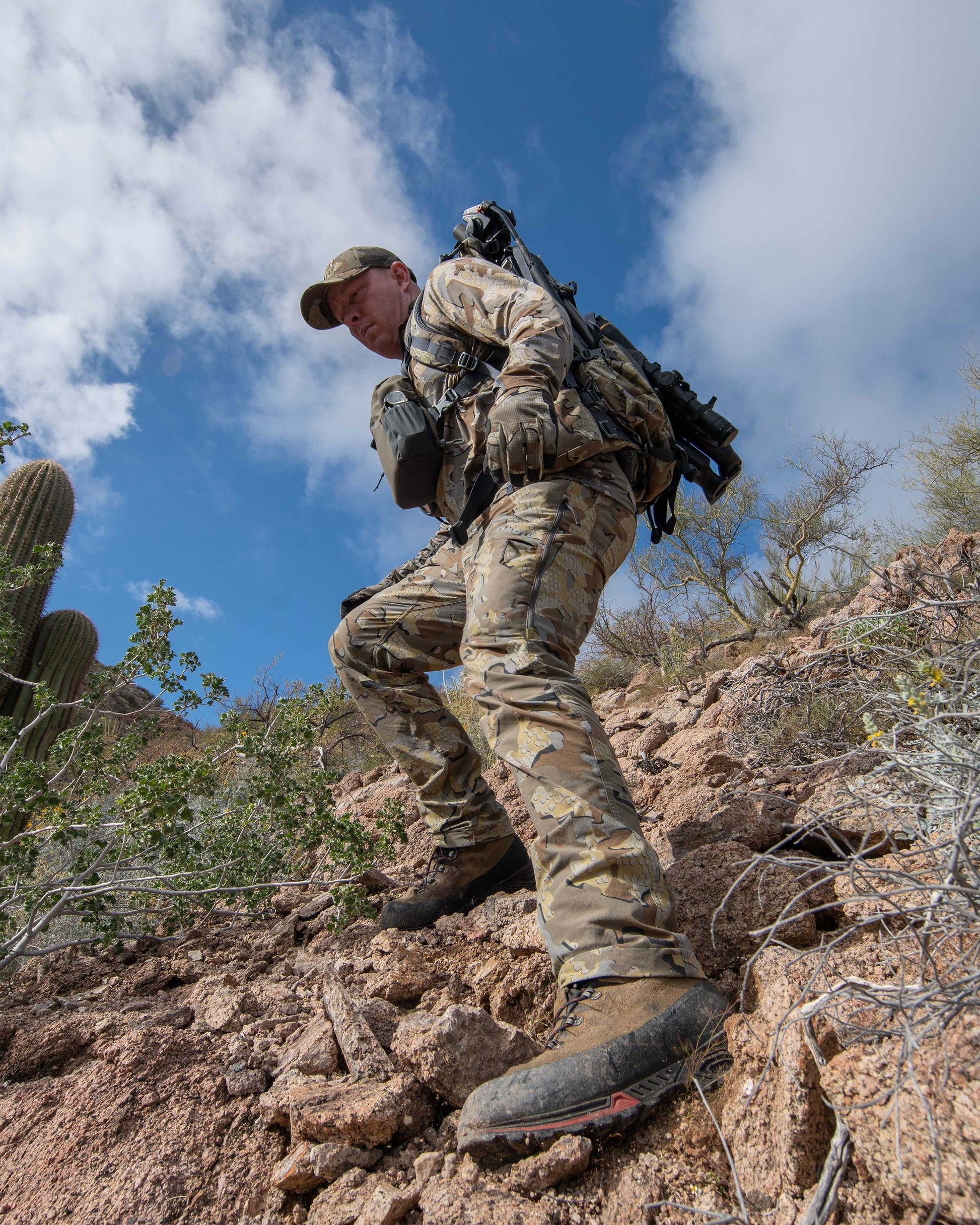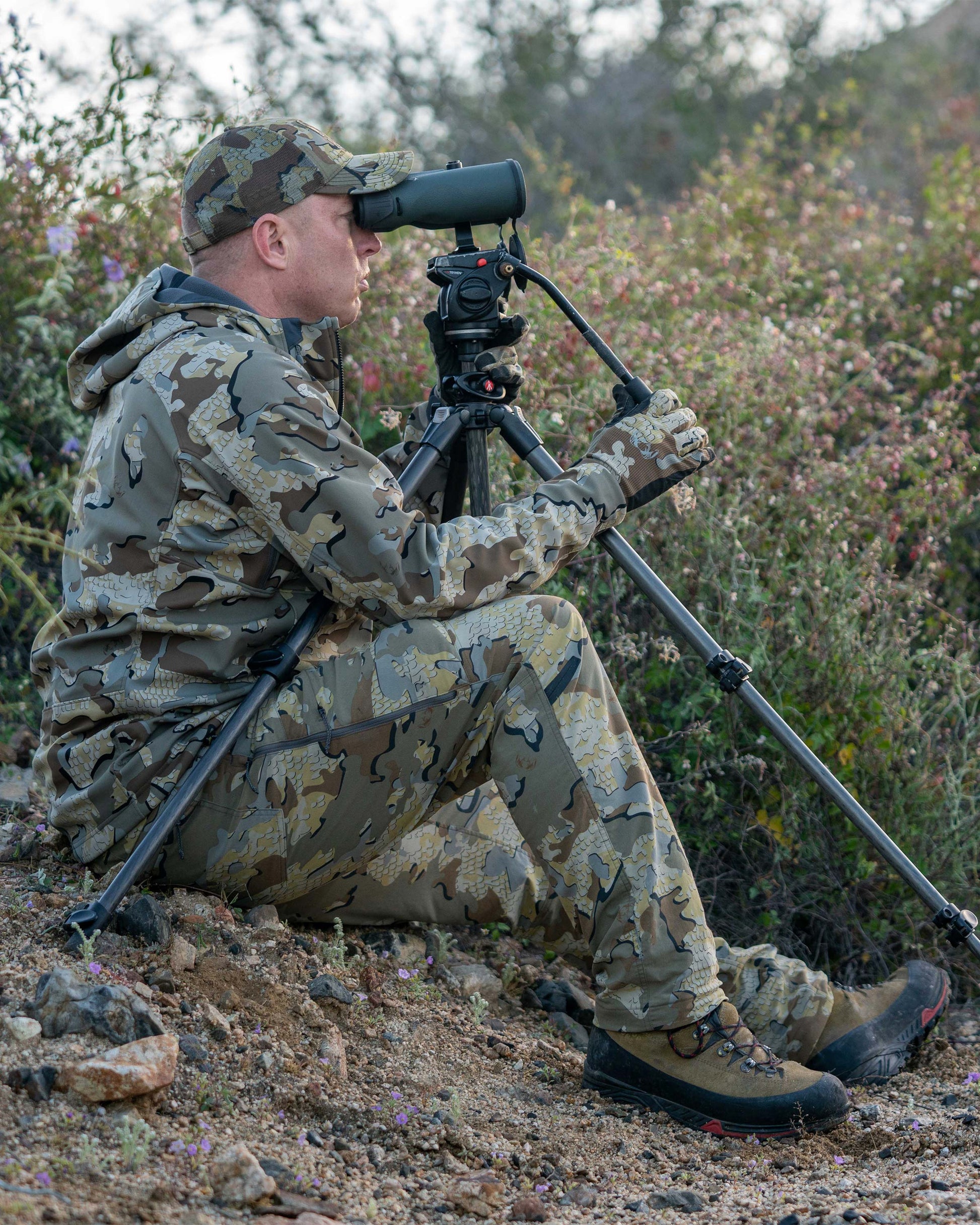 The Kutana Stretch Woven pant is a lightweight pant with enhanced pick and abrasion resistance that can handle unforgiving dense brush and rocky terrain. Toray Primeflex Nylon fabric boasts incredible tear strength and durability, allowing us to build a pant much tougher than other products in its weight class. Most stretch nylons use spandex, which absorbs water and breaks down over time, while Toray stretch nylons gain stretch from its fabric structure, eliminating spandex for better performance and life expectancy. Designed for early-to-mid-season hunts, the fit allows room for a base layer underneath in the cold, while zip hip vents provide ventilation for warmer conditions. Finished with Toray K-DWR to repel moisture, these pants sit perfectly between our Tiburon and Attack Pants.