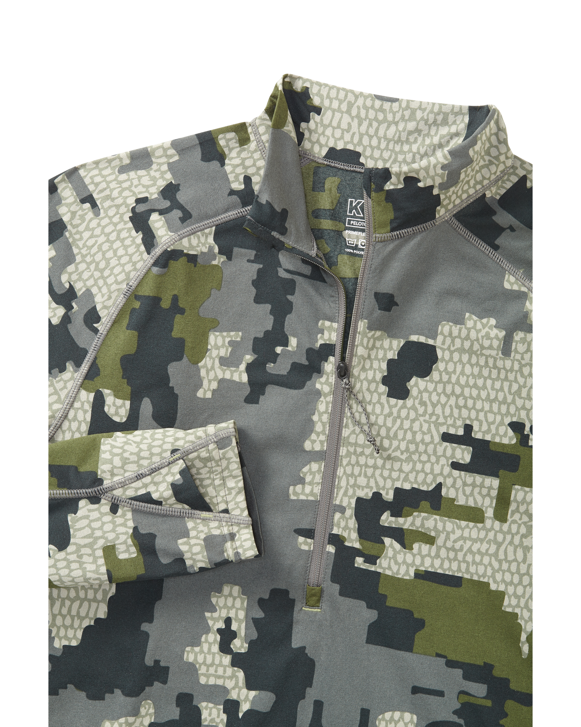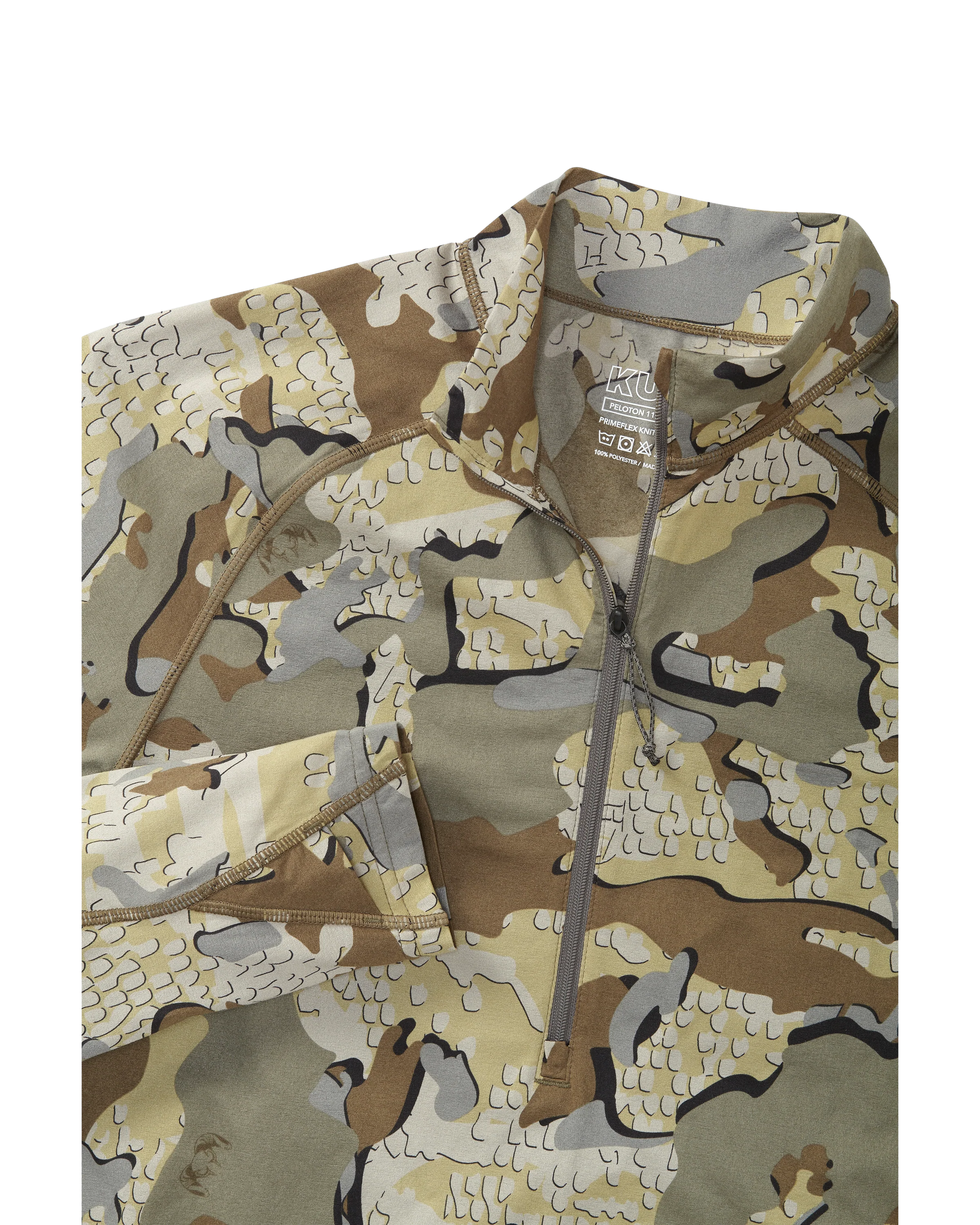 At KUIU we believe stretch without elastane (e.g. Spandex) is critical to performance and fit. Elastane or spandex fabrics are heavy, hold moisture, and lose shape over time. Constructed with Toray's patented Primeflex spiral yarn, the Peloton 118 Zip-T delivers the durability you expect from a synthetic, while still providing great stretch and recovery without elastane fibers. Our focus has been to partner with innovative fabric manufacturers such as Toray to offer fabrics that stretch through advanced fabric engineering, not the addition of elastomers.