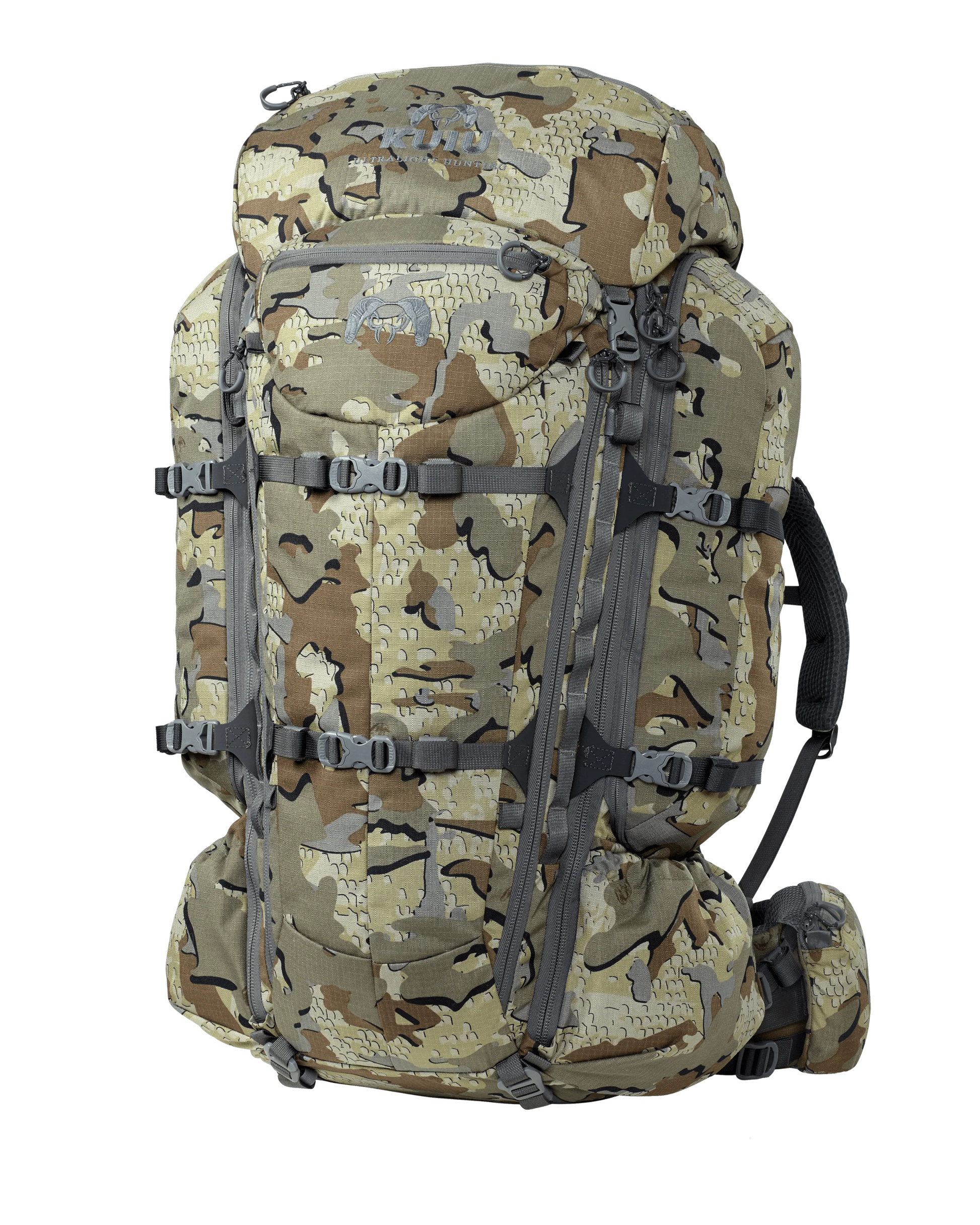 The fifth generation KUIU PRO Packs are fully featured with internal and external pocketing for ultimate organization and are crafted with premium materials for upmost reliability. All PRO Packs feature a built-in load sling mode, which expands an extra 2500 cubic inches of storage between the frame and bag for hauling meat or gear. PRO Packs are hydration compatible with up to three-liter water reservoirs. Packs are shipped fully assembled in your choice of color, frame size, and waist belt size.
