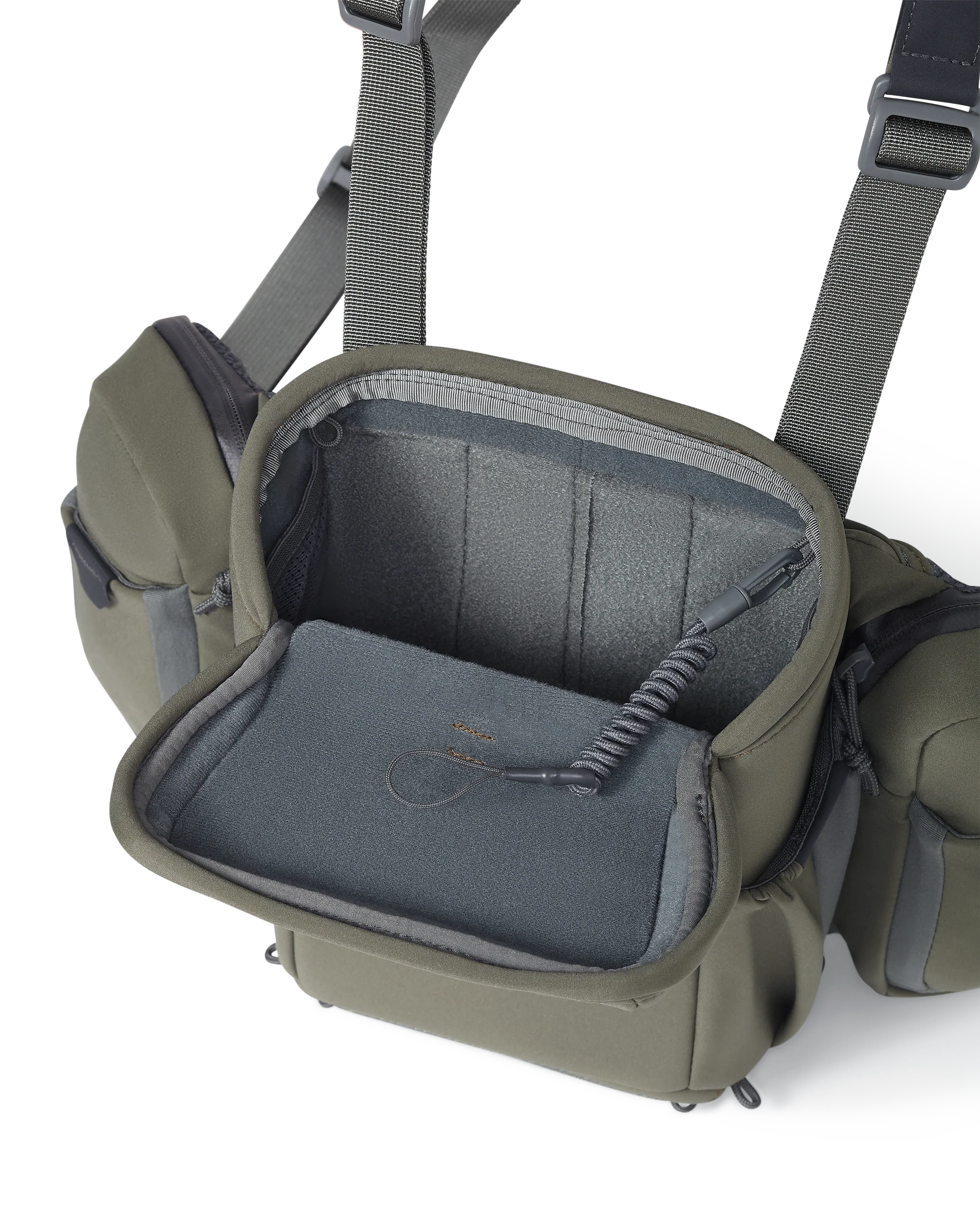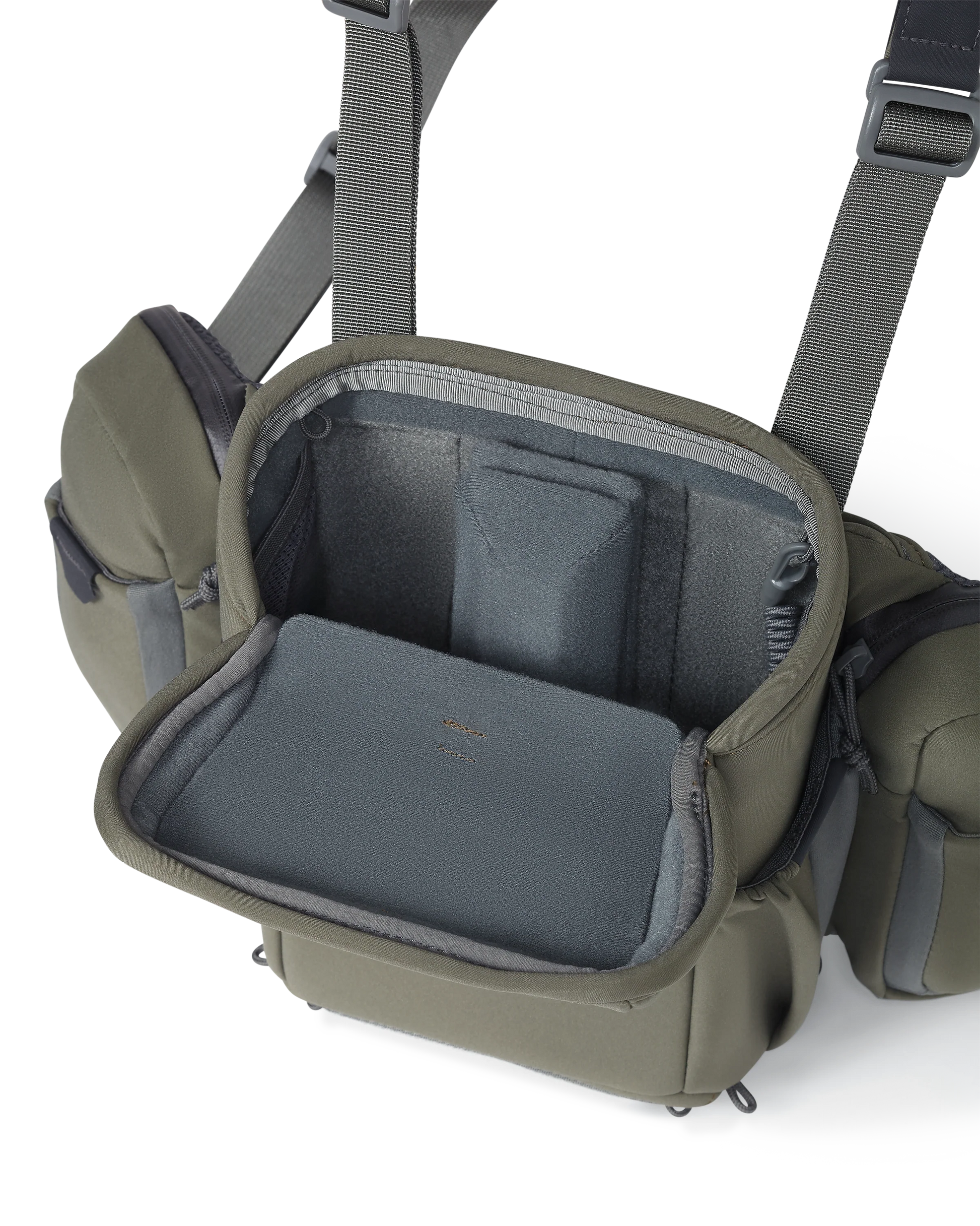 Built for the most technically demanding hunts, the PRO Chest Pack does it all while protecting your binoculars and electronics from water, dust, and debris. With a combination of integrated pocketing and an innovative modular accessory connection system, this full-featured chest rig keeps your binoculars, gear, and accessories organized and close to the chest.