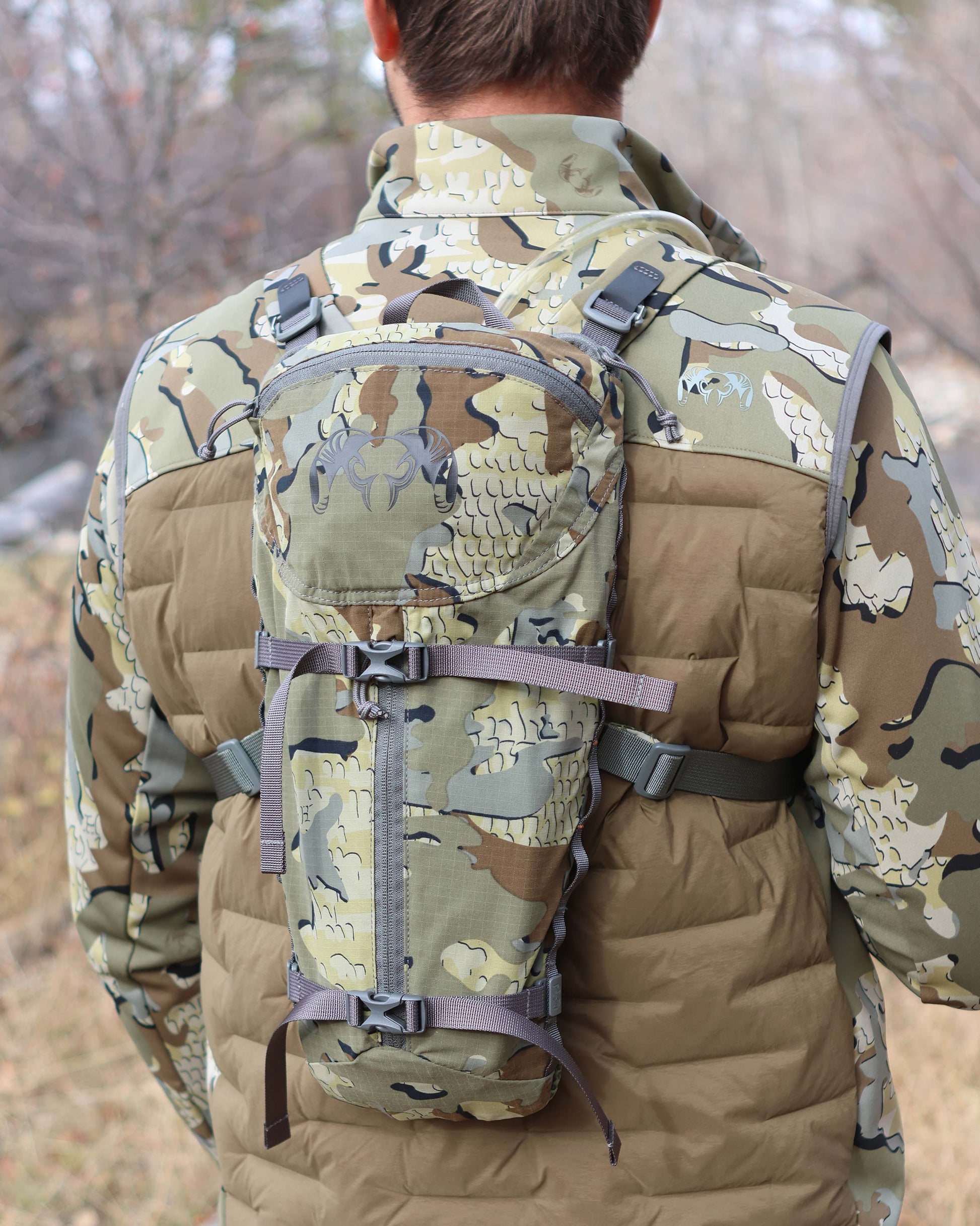 This minimalist hydration pack is built for the PRO G3 Bino Harness or PRO Chest Pack and holds up to a three-liter hydration system (Platypus 3L Hoser not included). It’s the perfect kit for a stalk, hike, or glassing session when only optics, hydration, and minimal gear are needed.