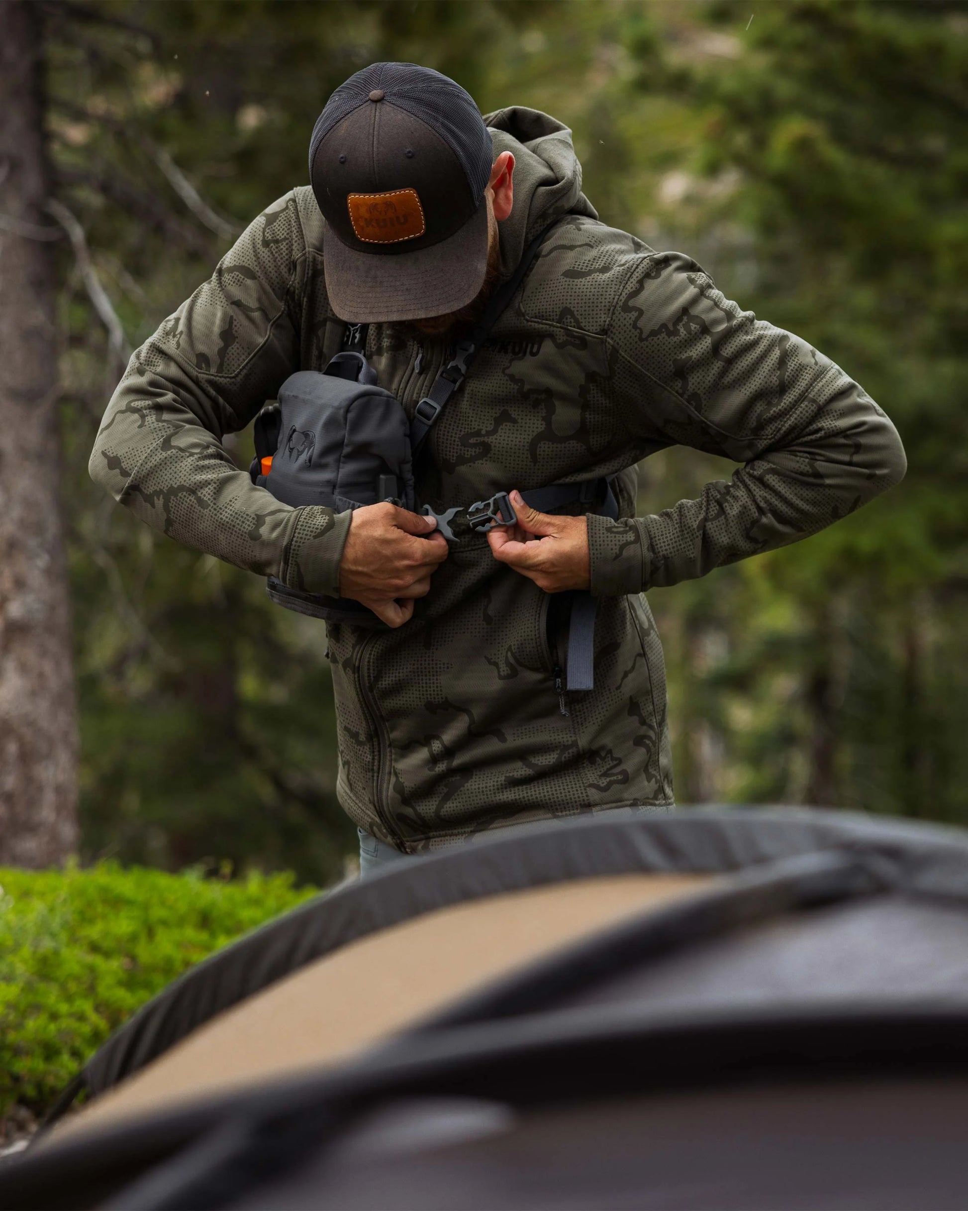 Designed as a durable mid-layer fleece top, the Ridgepoint Full-Zip Hoodie features an enclosed hood and fitted wrist cuffs for added warmth in cool to cold conditions. Build features also include raised hand pockets that are accessible even while wearing pack waist belt.
