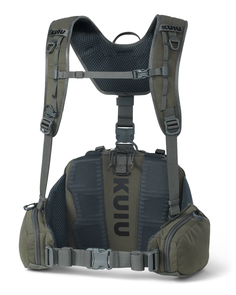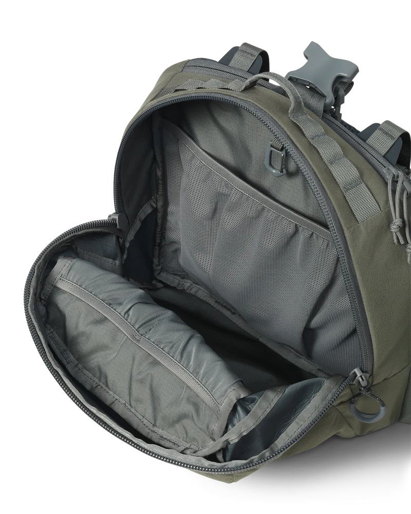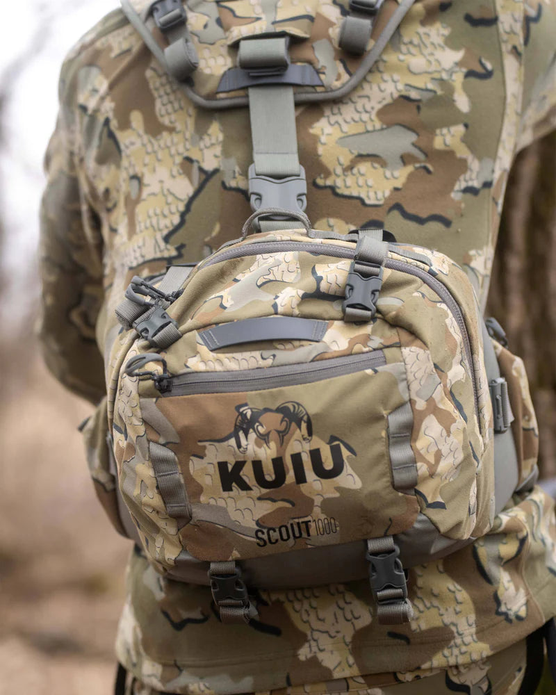 The Scout 1000 waist pack (1000 cu. in. / 16L) is crafted with a minimalist design for hunters who demand stealth and efficiency in the stand or blind. Built to carry a full day’s essentials—calls, food, and a 3L water reservoir—it features dedicated internal pockets for seamless organization and external compression straps to secure extra layers, climbing sticks, and other treestand accessories.