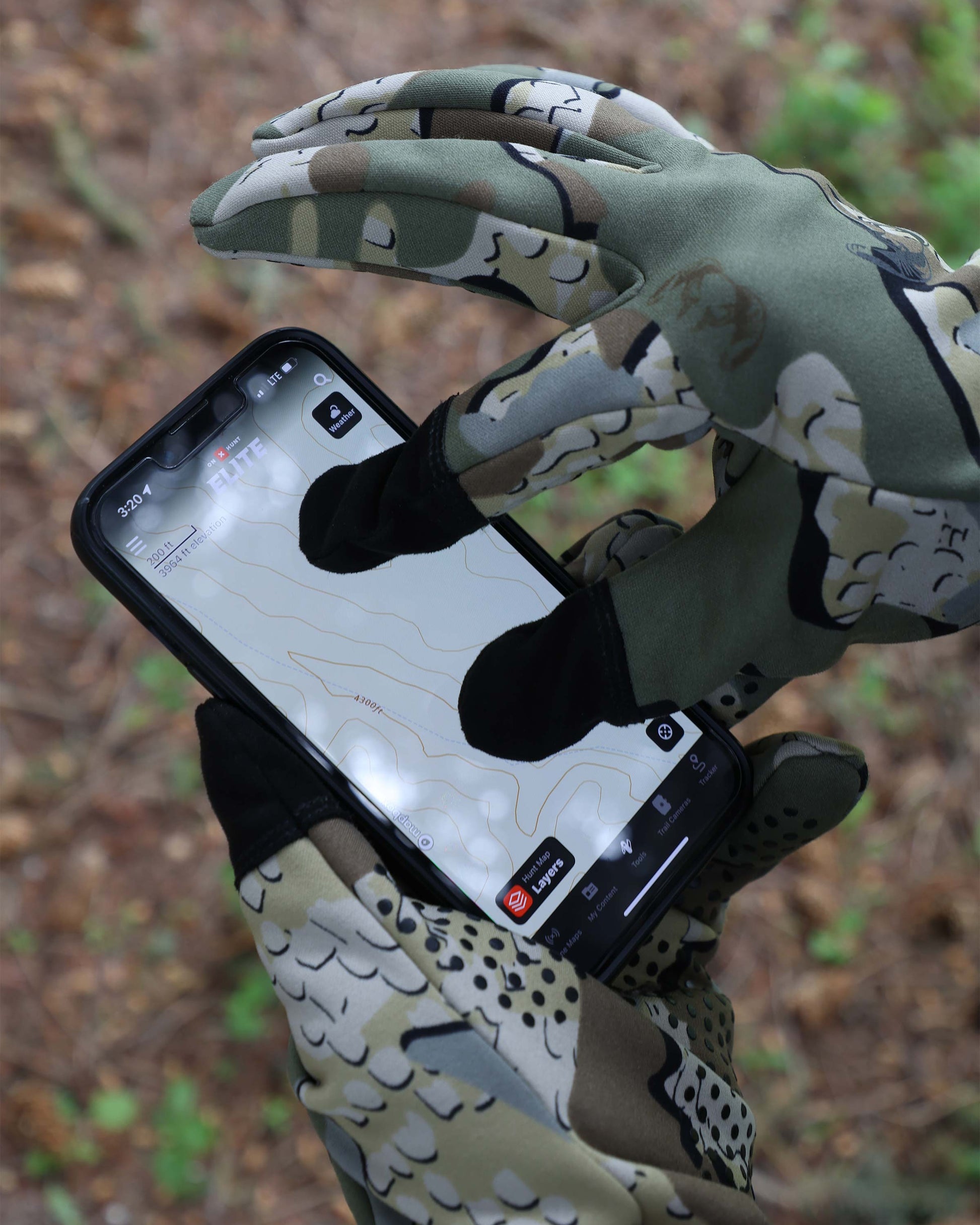 Ideal for bowhunters, the glove features a cuttable passthrough port to accommodate a wrist release so the glove can be worn over the release for unrestricted shooting performance. For customizable use and a precise trigger feel, the conductive sections on index and thumb can be cut off above the seam without unraveling.