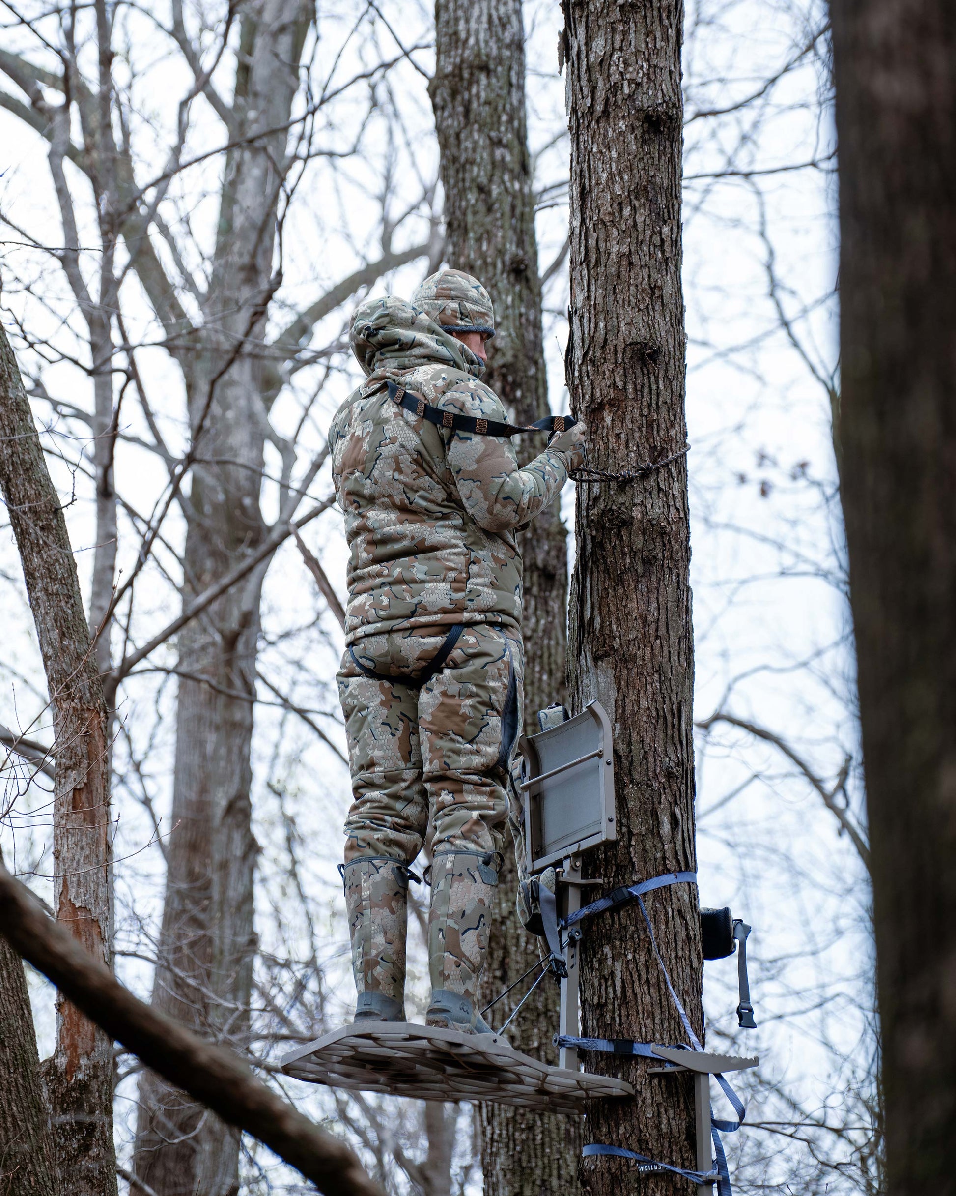 We leverage our 3DeFX+ synthetic insulation for a streamlined fit in the lower leg, whether worn over or tucked into your boots. The seat of the bib utilizes layers of both down and 3DeFX+ for the perfect amount of warmth, and compression resistance needed for sitting on a frozen treestand.