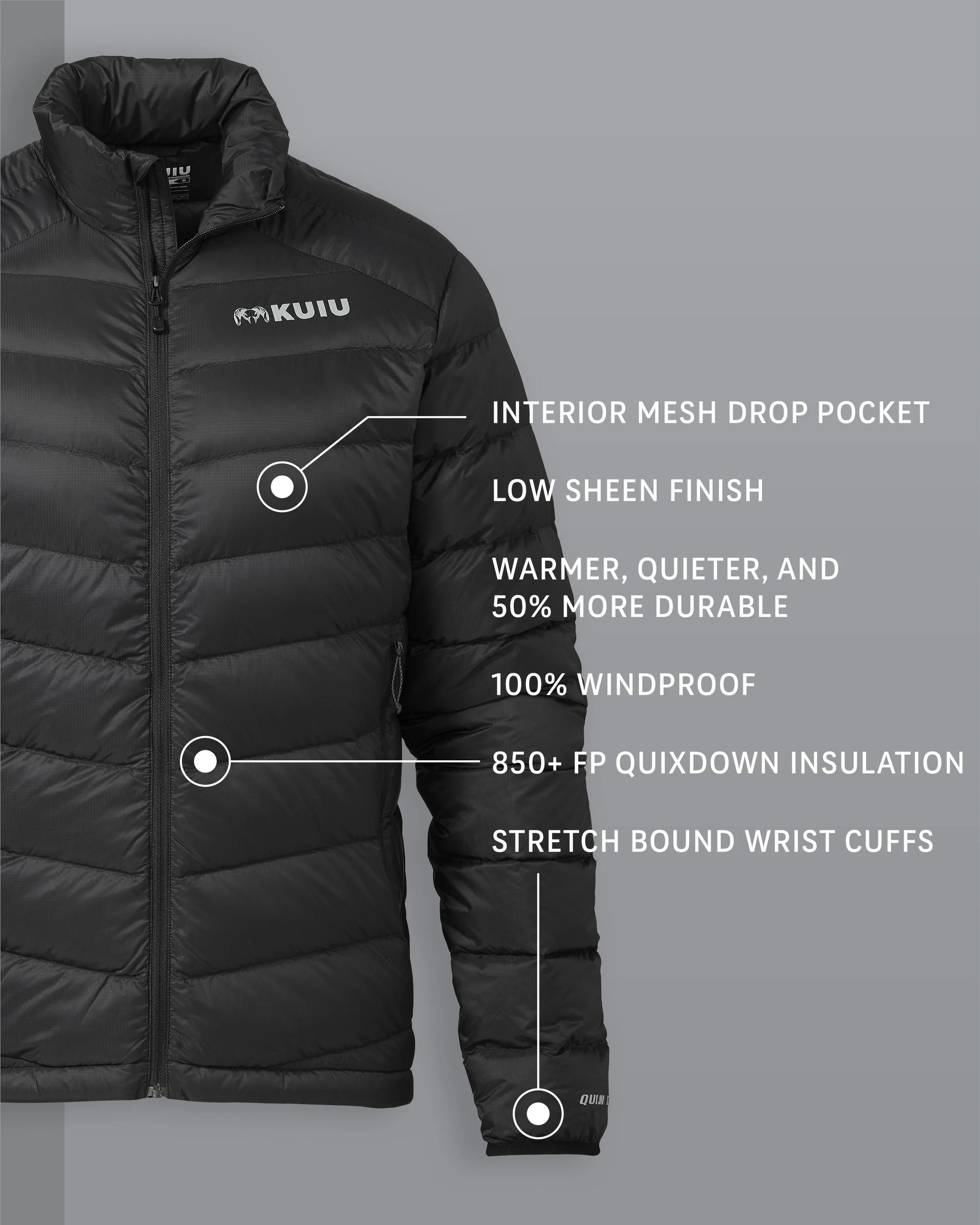 - Insulation: 850+ FP Water Resistant Quixdown®