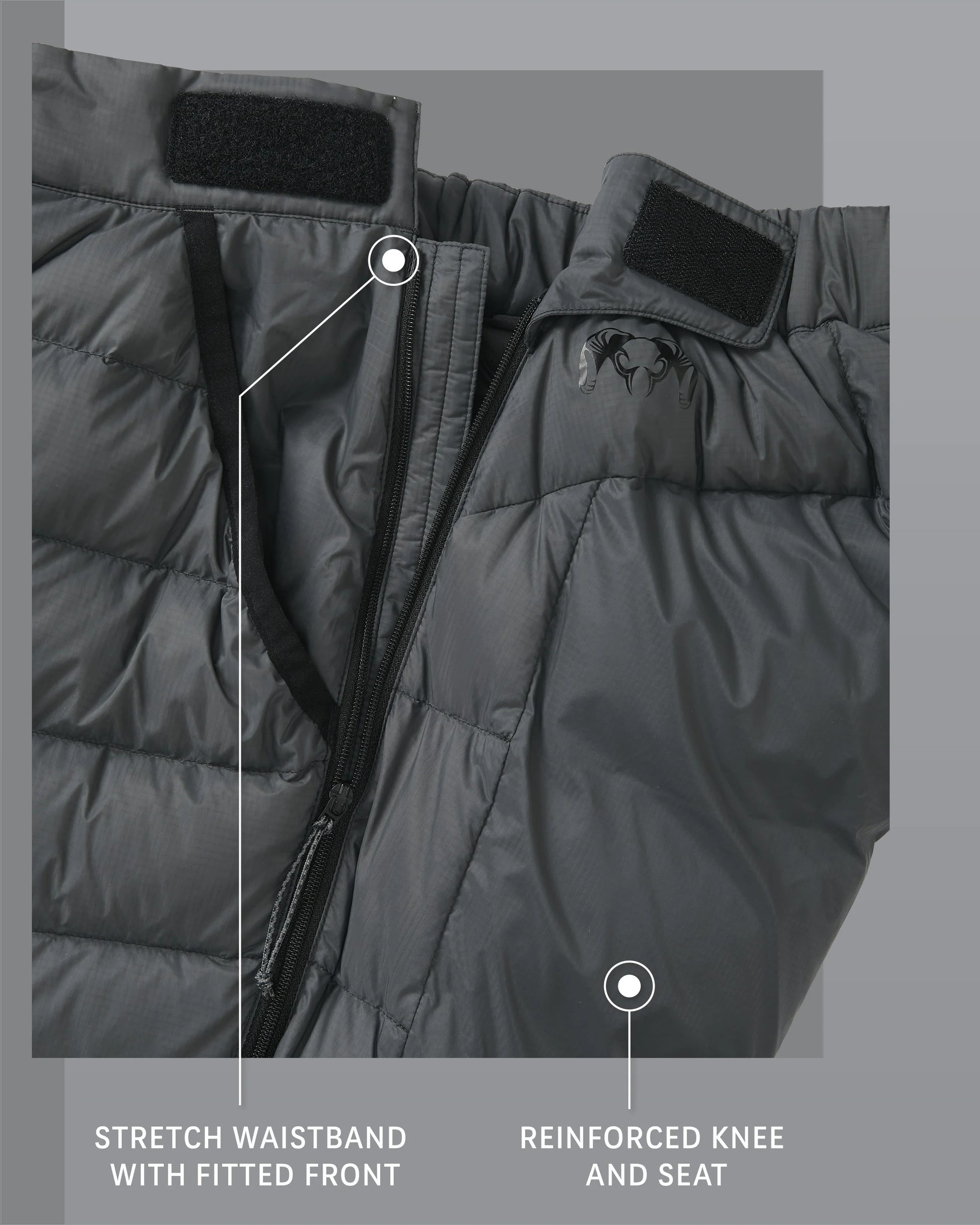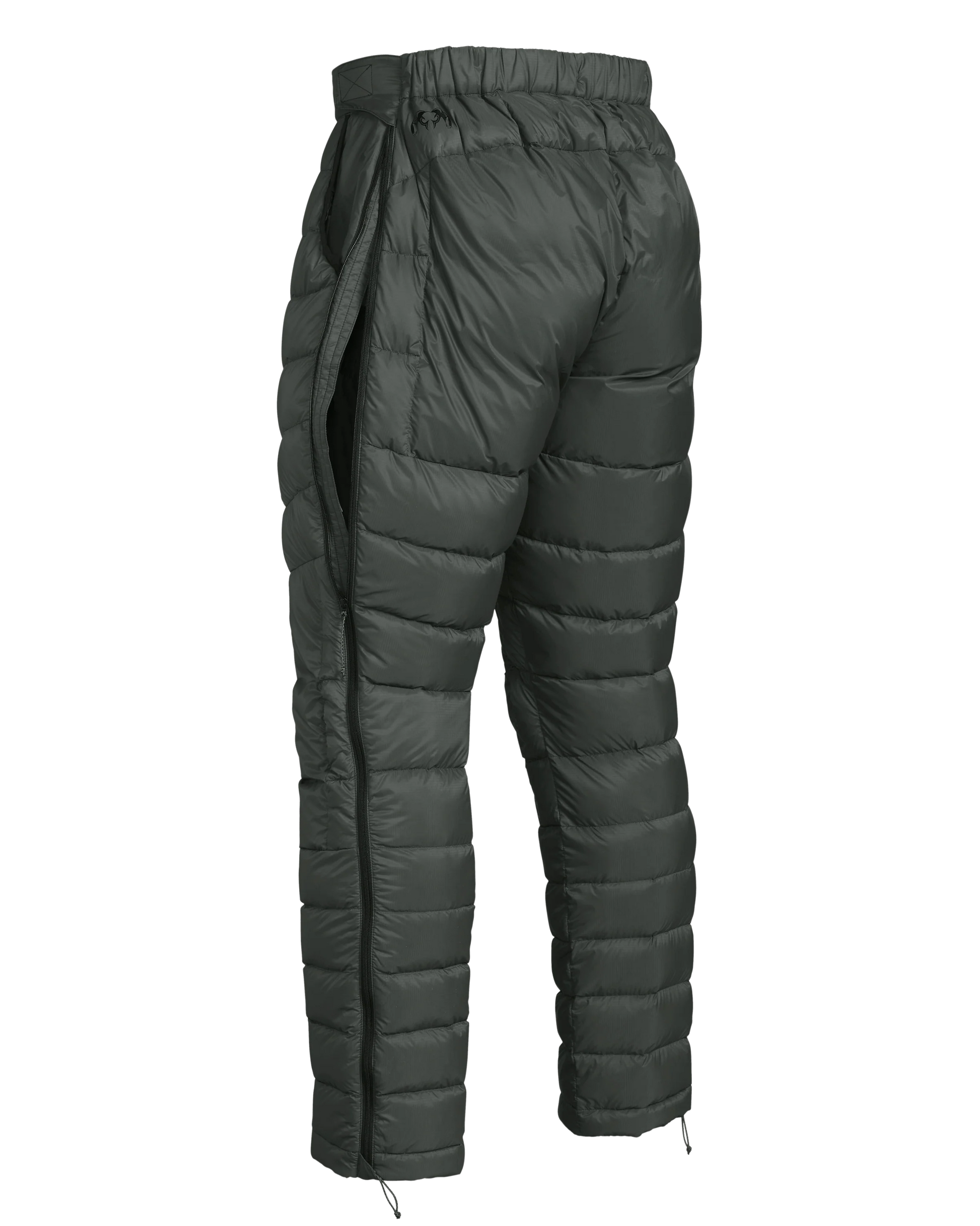 For ultralight packability, the pant self-stows in its right-hand pocket with an envelope closure. Alternatively, the pant can be stowed inside the Super Down LT Jacket's stow pocket for a one-piece kit pack solution.