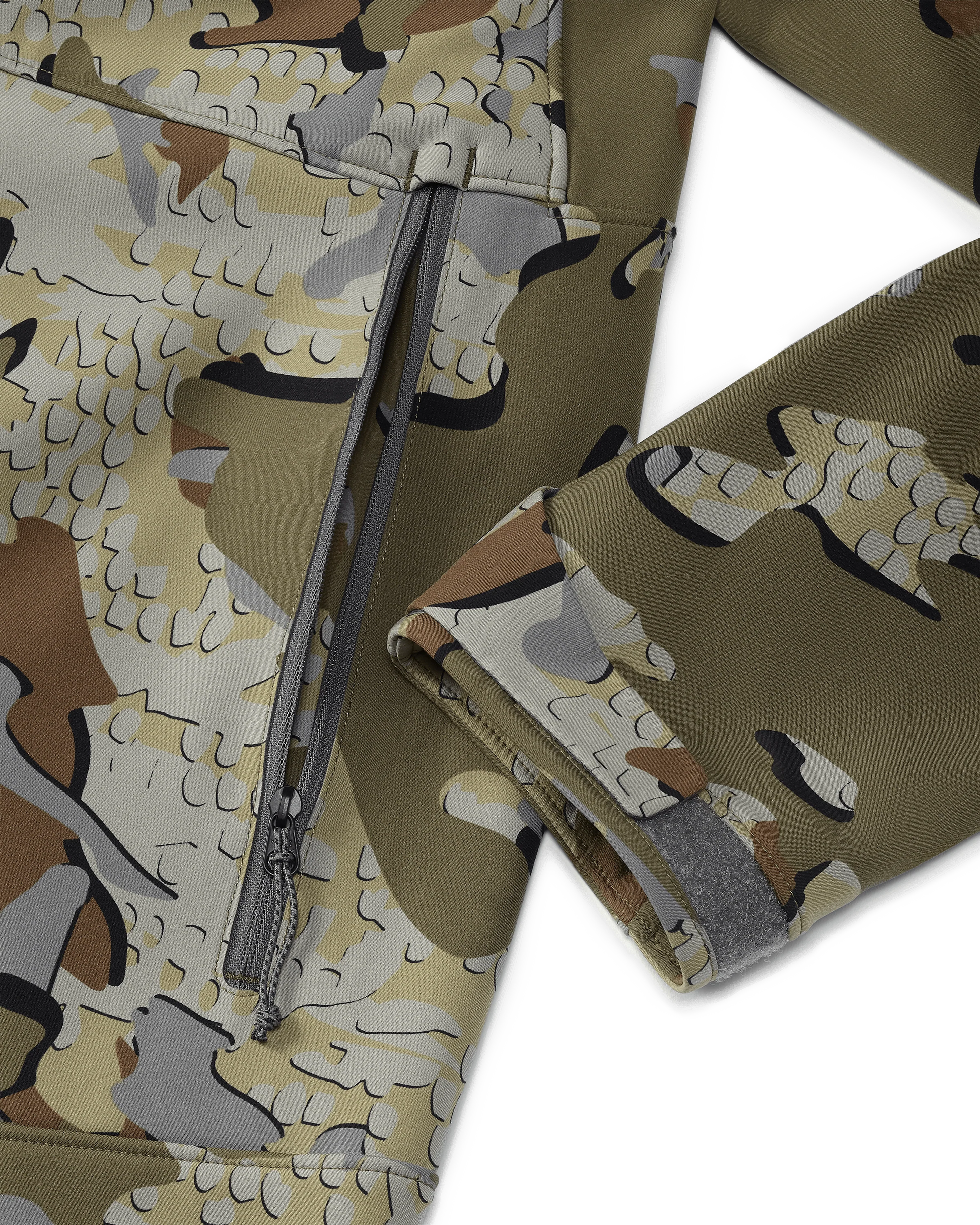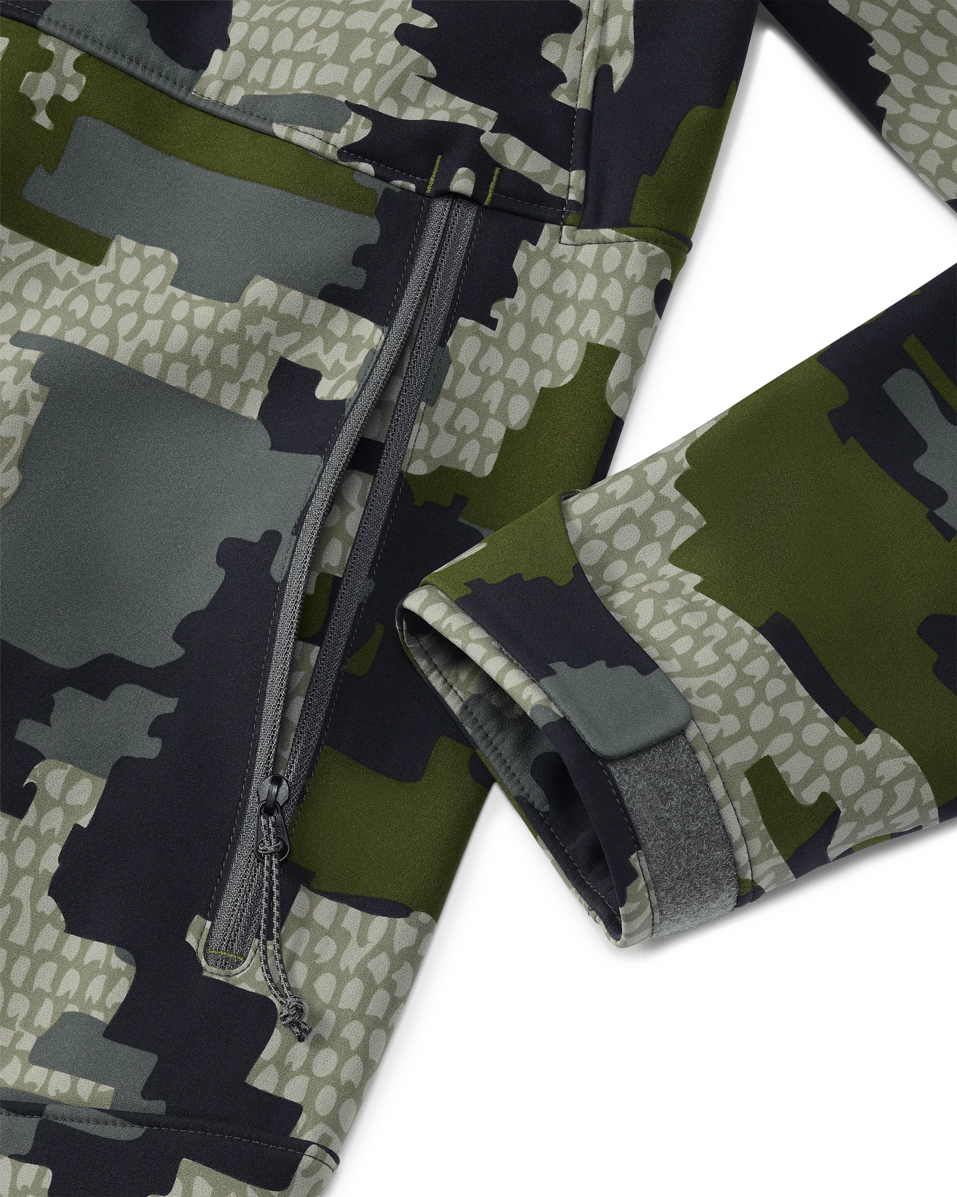 Designed for mountain hunting, the Guide PRO is ideal for colder conditions when heavily insulated layers and 100% waterproof protection are not necessary. Leveraging K-DWR® durable water repellency, combined with Primeflex® quick-drying fabric, it withstands light rain and snow in conditions most would opt for hardshell rain gear.