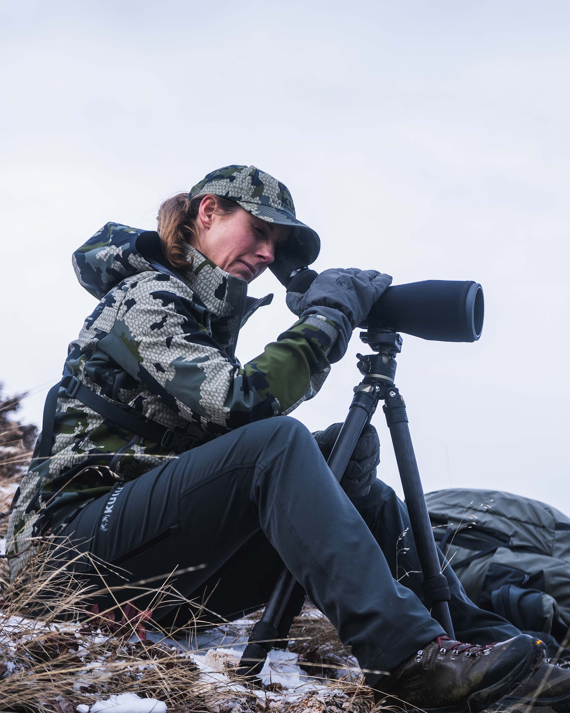 With the woman mountain hunter in mind, we optimized and fine-tuned every feature, including dual chest pockets with an added accessory lanyard connection point, zippered pit vents for thermoregulation, and a two-way adjustable storm hood that can be cinched back on either side and worn up while shooting. In addition, an adjustable hem cinch blocks out wind, and raised hand pockets stay accessible while wearing a pack.